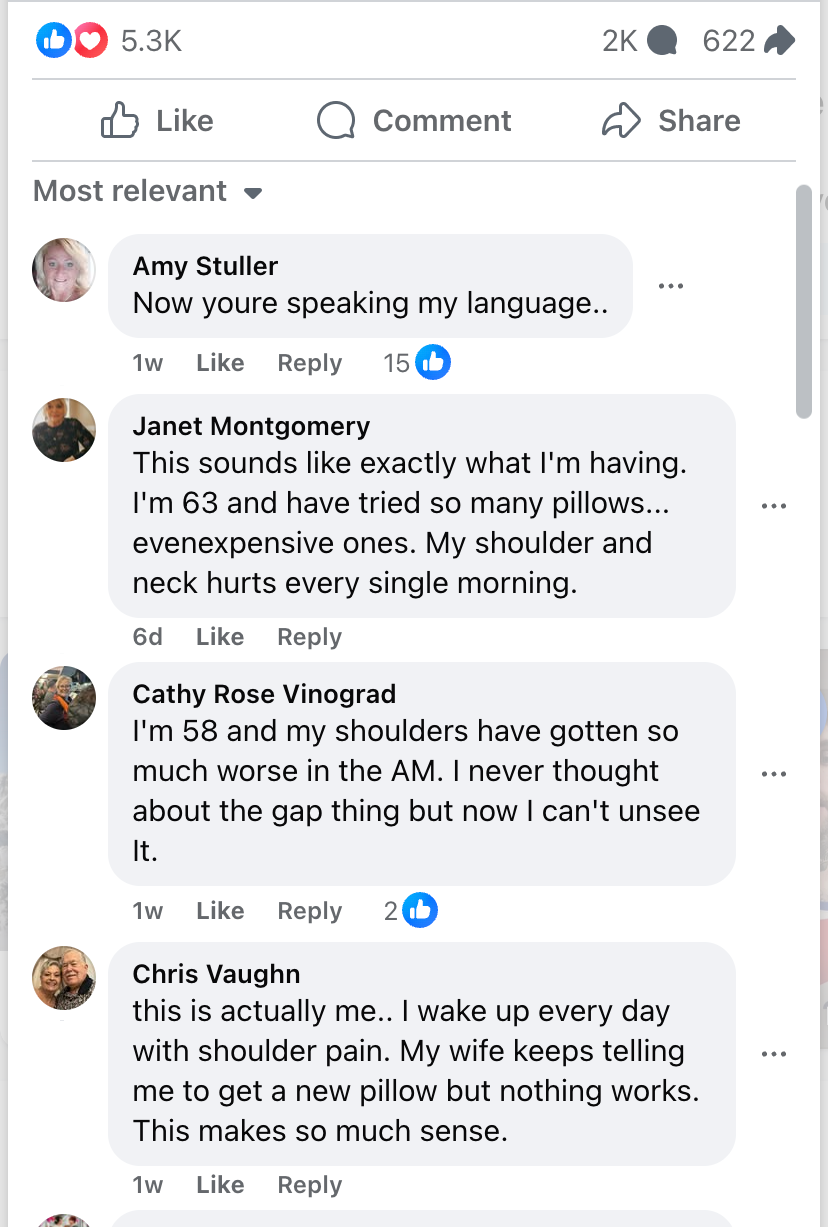 "Dr. Buchanan? I saw your post about the neck gap issue in side sleepers. I'm Dr.
